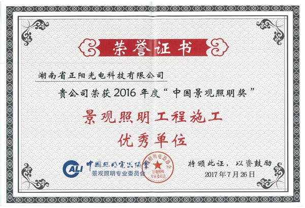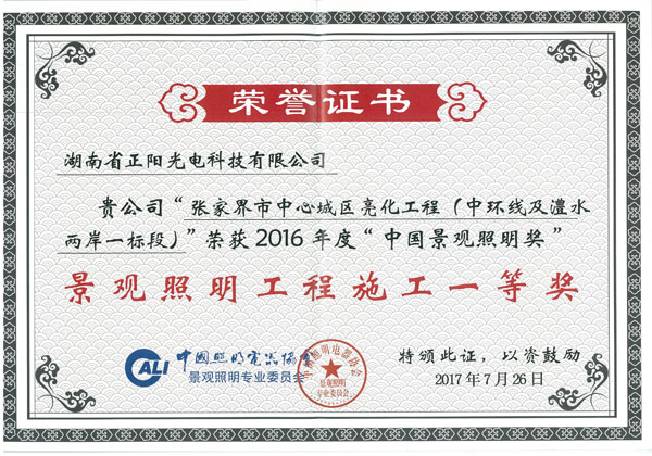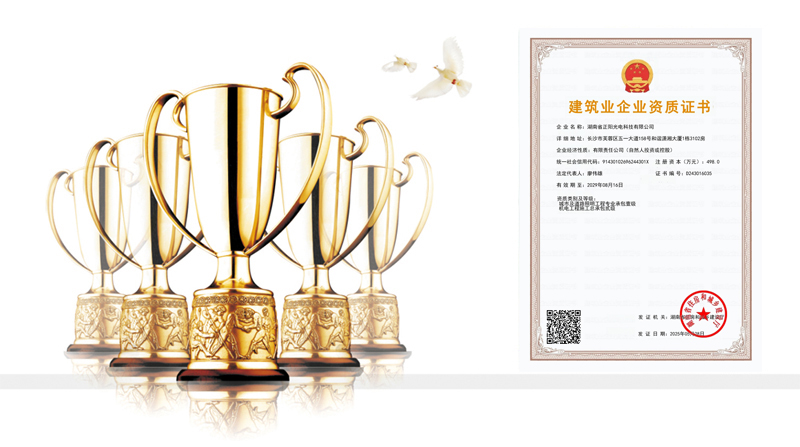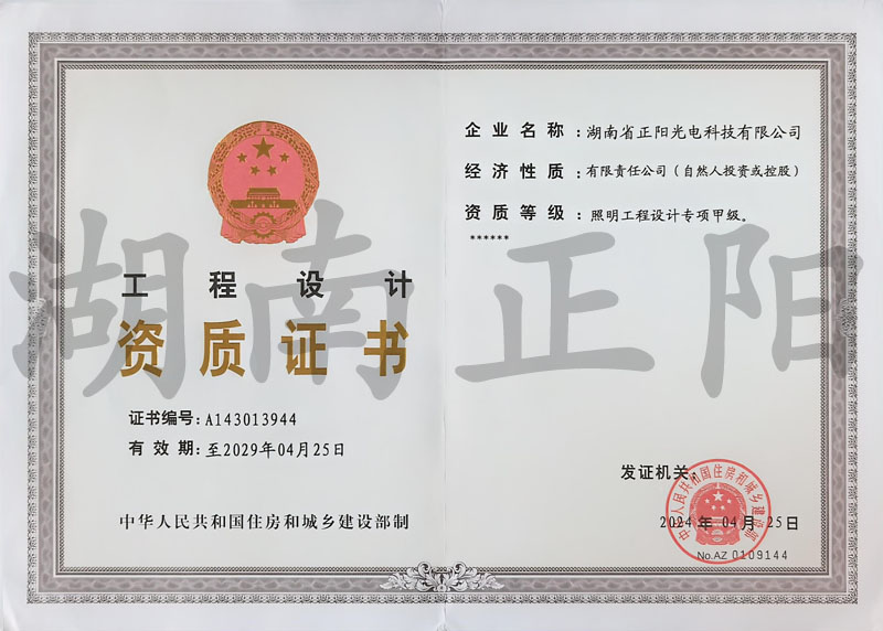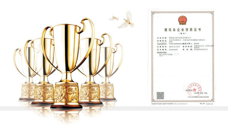 湖南省正陽光電科技有限公司是一家從事亮化工程及大型燈光藝術(shù)的設計、制作、安裝和維護于一體的專業(yè)化公司。公司資質(zhì)齊全、管理嚴謹、技術(shù)先進、實力雄厚,取得了城市及道路照明工程專業(yè)承包壹級資質(zhì)、照明工程設計專項甲級資質(zhì)、機電工程施工總承包貳級資質(zhì)、施工勞務等資質(zhì)、國家高新技術(shù)企業(yè)、國家“重質(zhì)量·守誠信”示范企業(yè)。